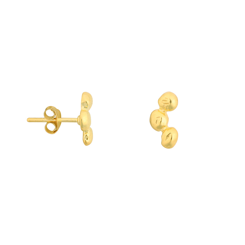 De Balls Stud V2 is een paar stud oorbellen in de vorm van een compositie van drie kleine oneffen bolletjes die aan elkaar gemaakt zijn en samen een organische vorm maken. De oorbel heeft een lengte van ca 0,8 cm. Klik hier om alle oorbellen te bekijken. Al onze sieraden zijn te mixen en matchen met elkaar.