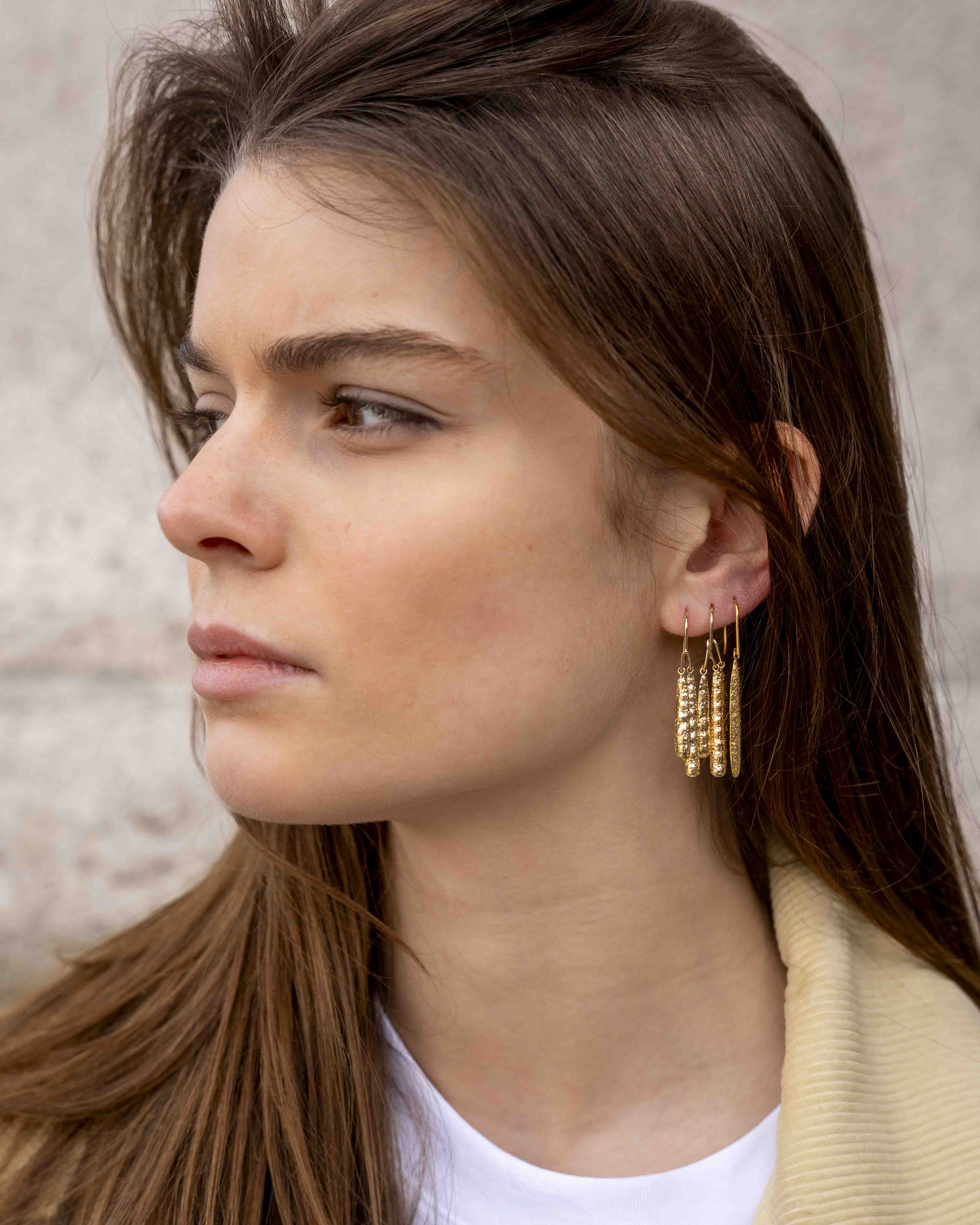 De Triple Seed Hook Earring is een paar hook oorbellen met daaraan 3 langwerpige bedels in de vorm van een zaadlijst. De oorbel heeft een lengte van ca 3 cm. Klik hier om alle oorbellen te bekijken. Al onze sieraden zijn te mixen en matchen met elkaar.
