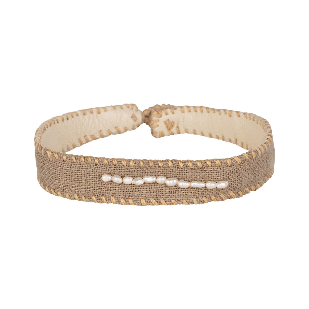 Vintage Linnen Bracelet Pearls Beige
